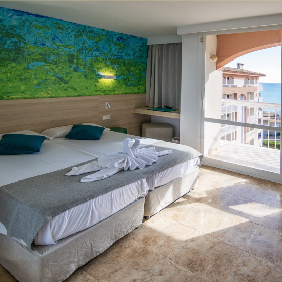 Situées aux deux derniers étages, nos chambres doubles Premium offrent une taille parfaite et vous garantissent une vue panoramique sur la mer et la piscine.